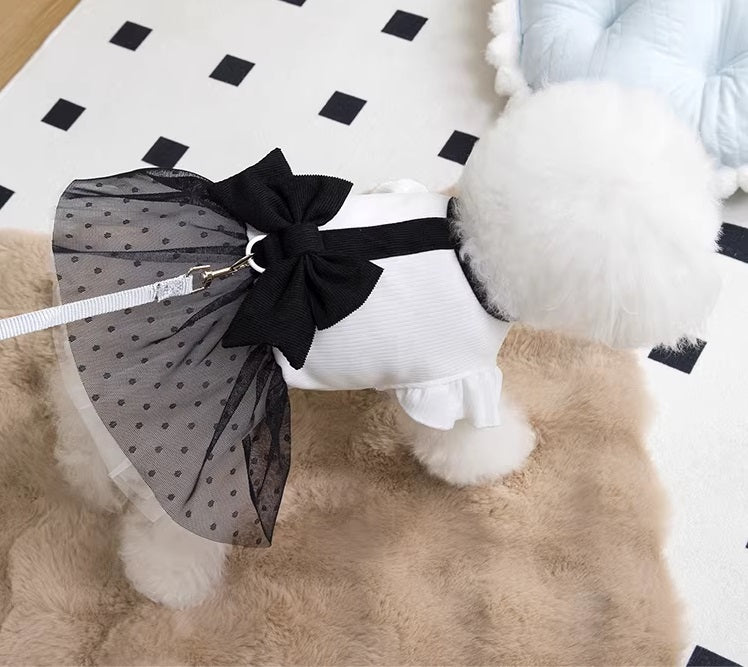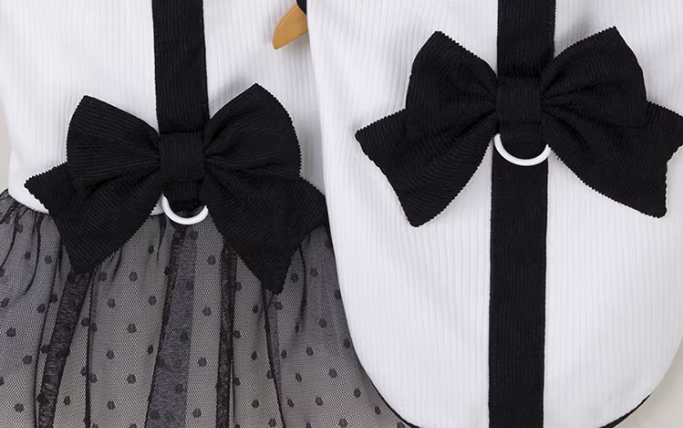一歩歩くたびに揺れる大きな黒いリボンと、 ふんわり広がるドットチュール。 まるでお城のお姫様と王子様のような気品を。